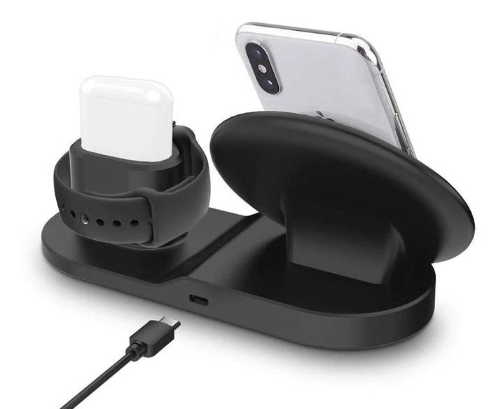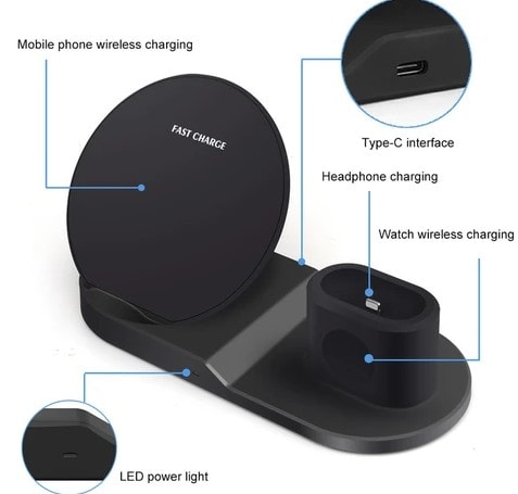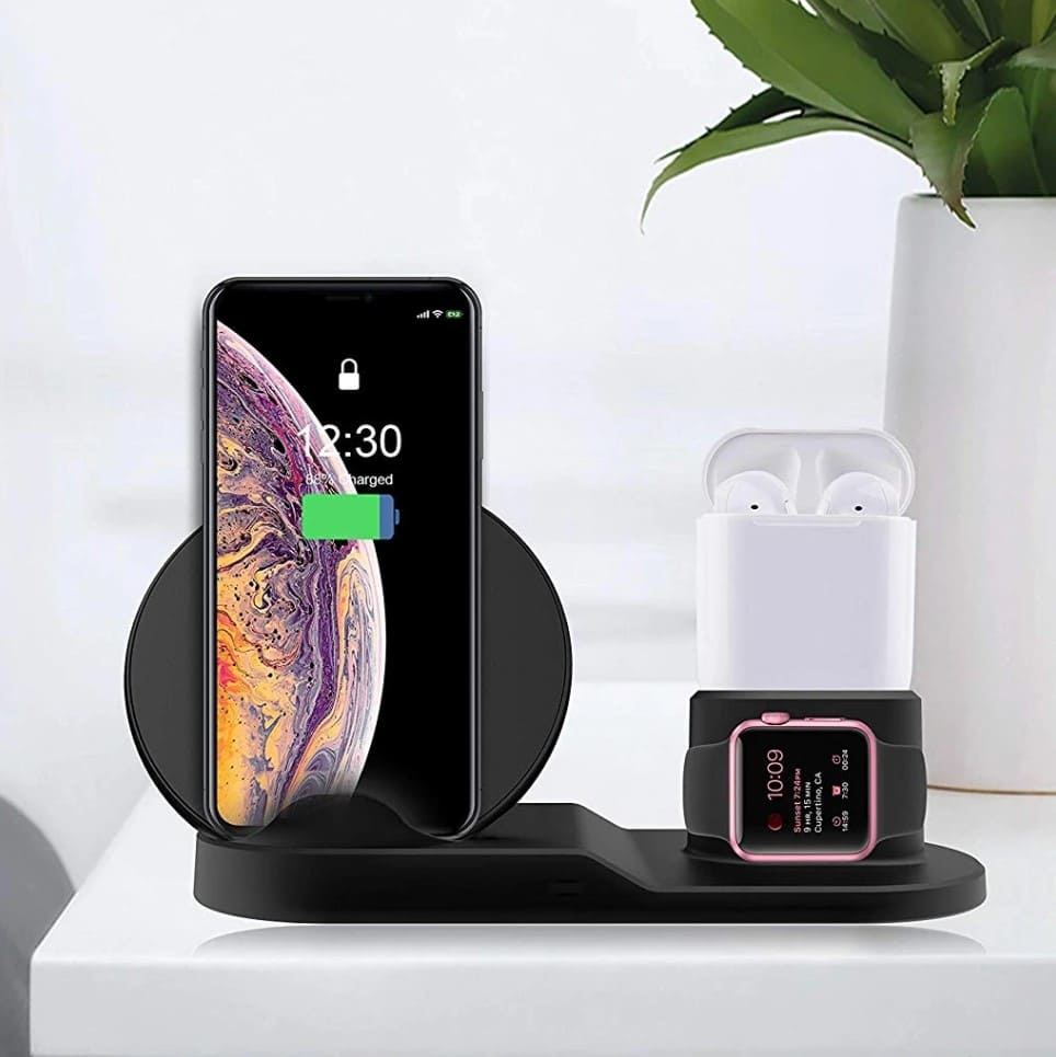 Excellent charging station, one of the best. All areas charge, the magnet for the watch is weak. The adapter can charge the iPhone.