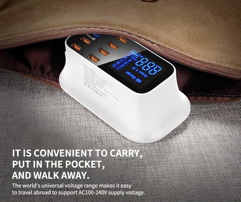 Visual LCD Display – Equipped with a LCD digital display, intelligently shows the current and charging status for each charging port on the screen. Light weight and compact design are ideal for home, office and desktop use. Wide input voltage range of AC100-240V which suits for international travel perfectly.