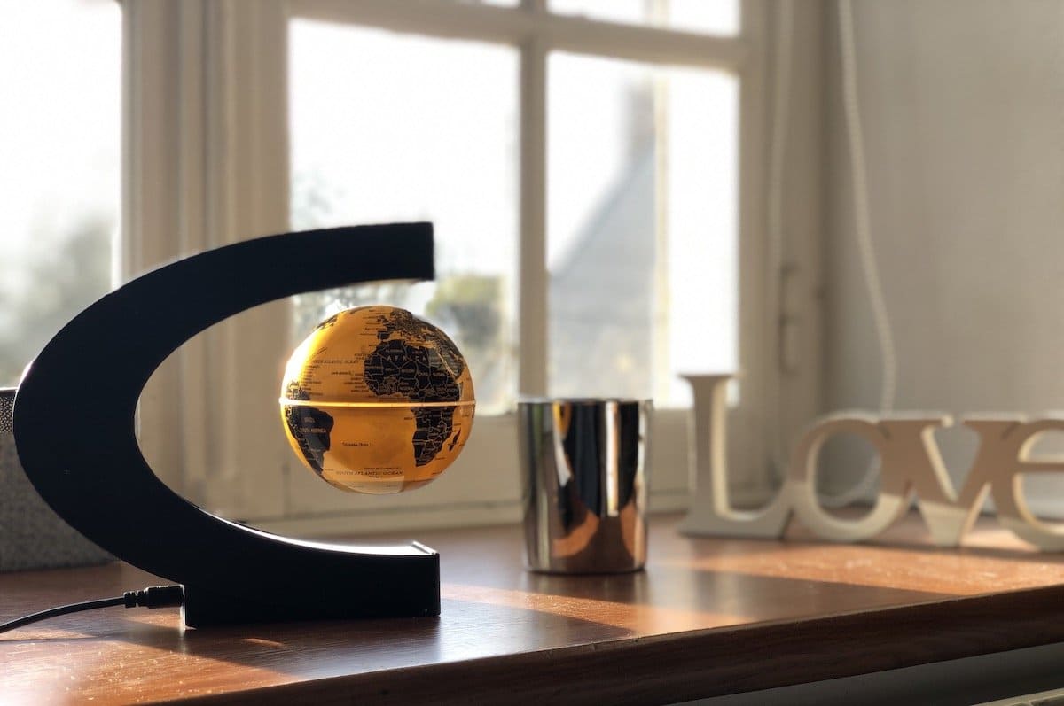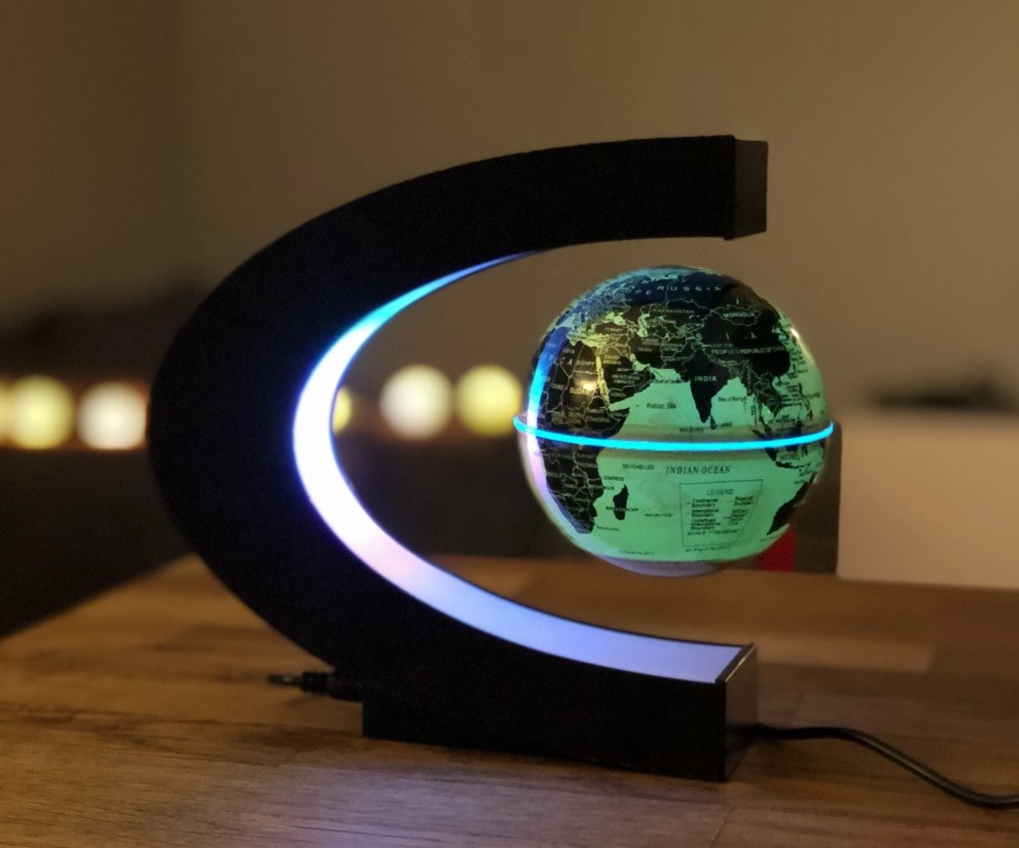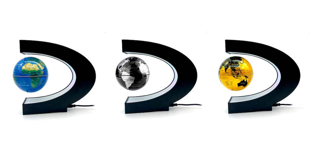 3 colors available: The floating globe is available in three different colors including blue, gold and black.