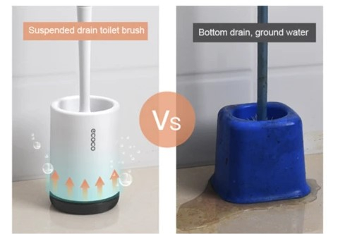 The brush holder features a suspended drain to allow water to drain and evaporate, eliminating moisture and mold build-up.